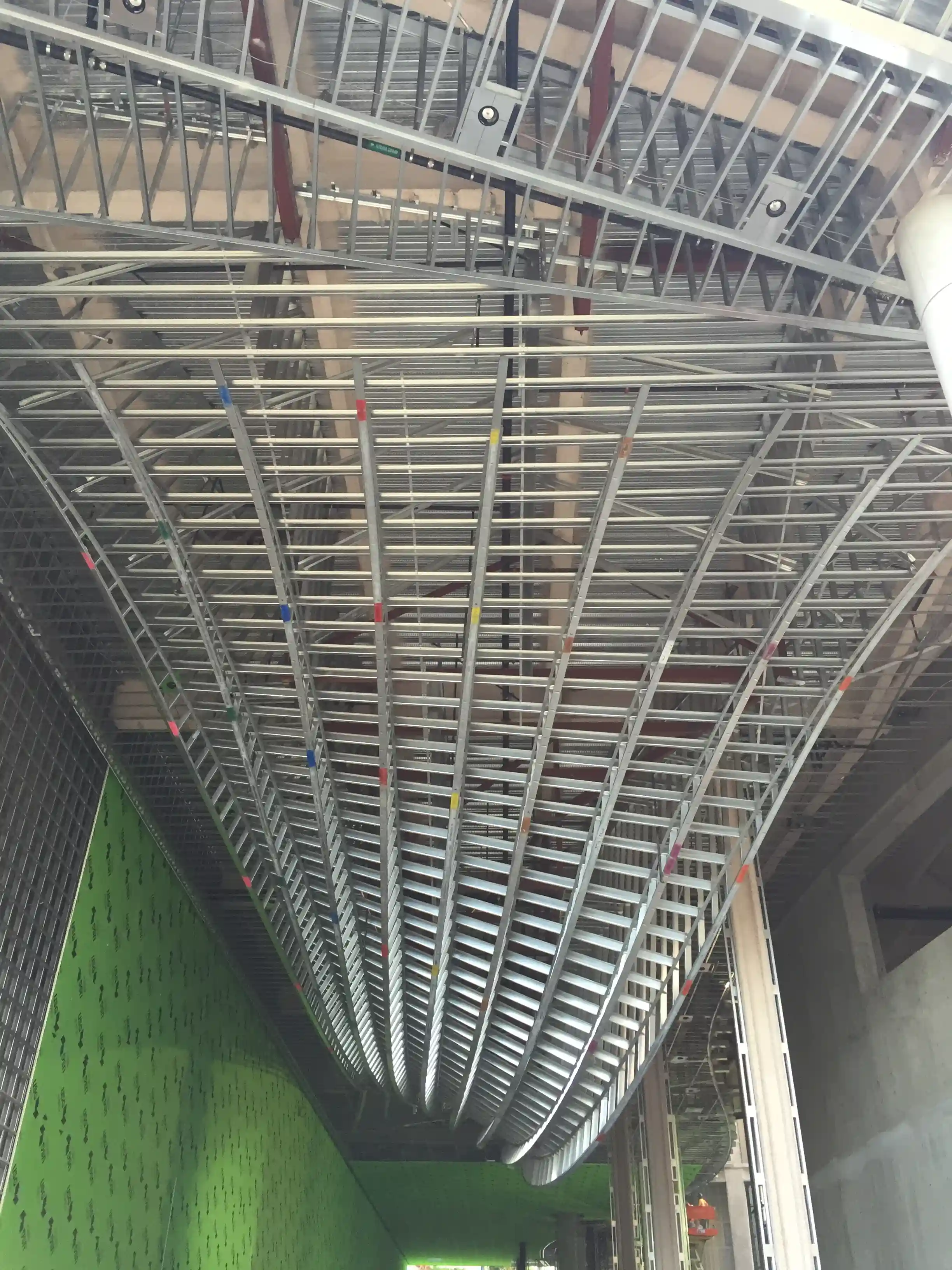Layered, stepped, or freeform profiles built for ease. When hanger supports are limited, Radius Track curved soffit framing strategies span farther, reducing complexity and cost while coordinating seamlessly with lighting and other MEP systems.