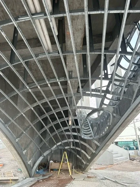 Floating ceiling forms that hang with ease. Pre-curved or panelized steel framing ensures consistent geometry, seamless alignment, and efficient installation for clean, well-coordinated results overhead.