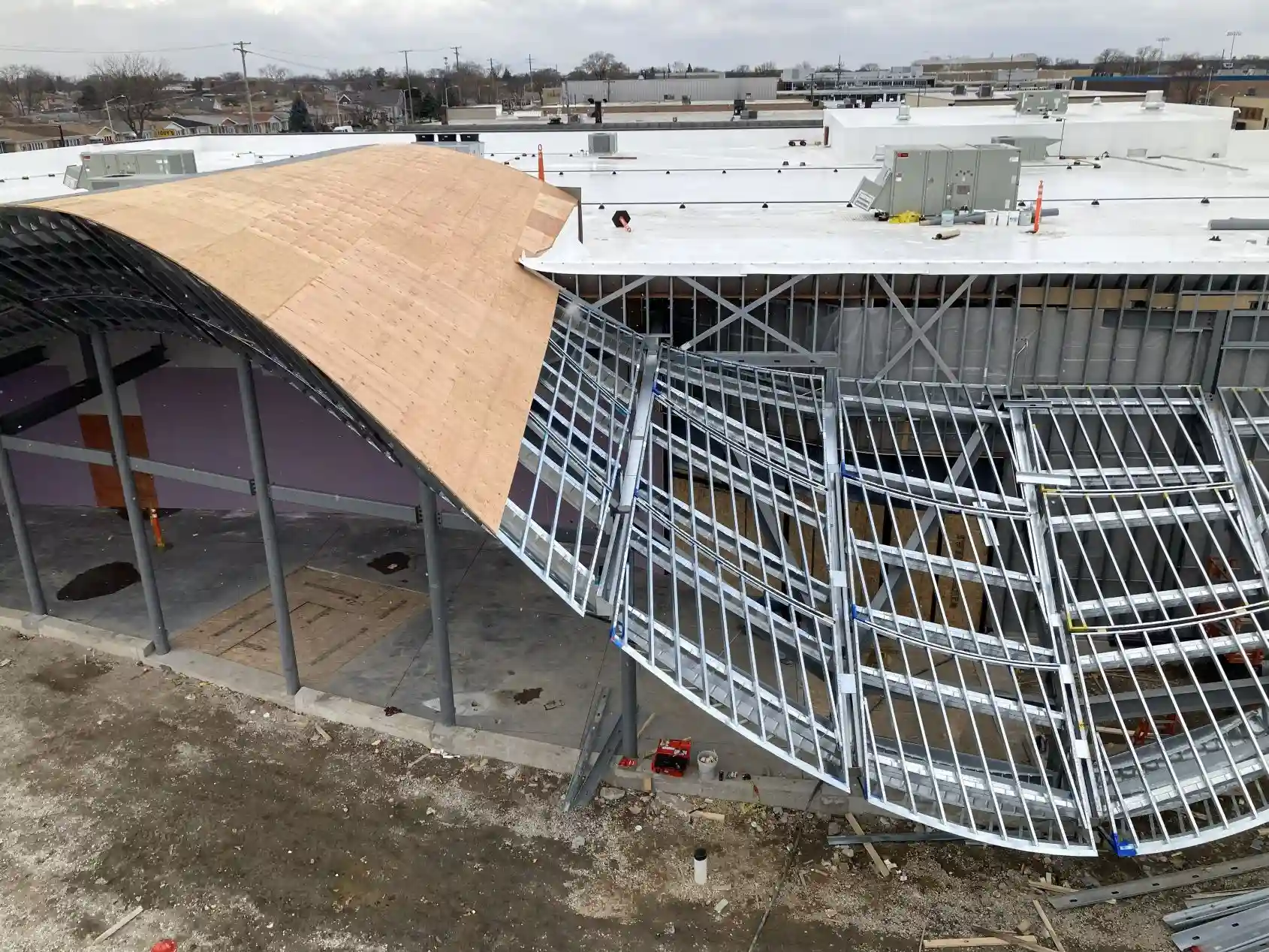 Transform curved roof designs into constructible systems. Our light-gauge steel framing delivers precision and efficiency through offset clips for geometry control, structured assemblies, or cold-formed steel infill integrated with complex primary steel structures.