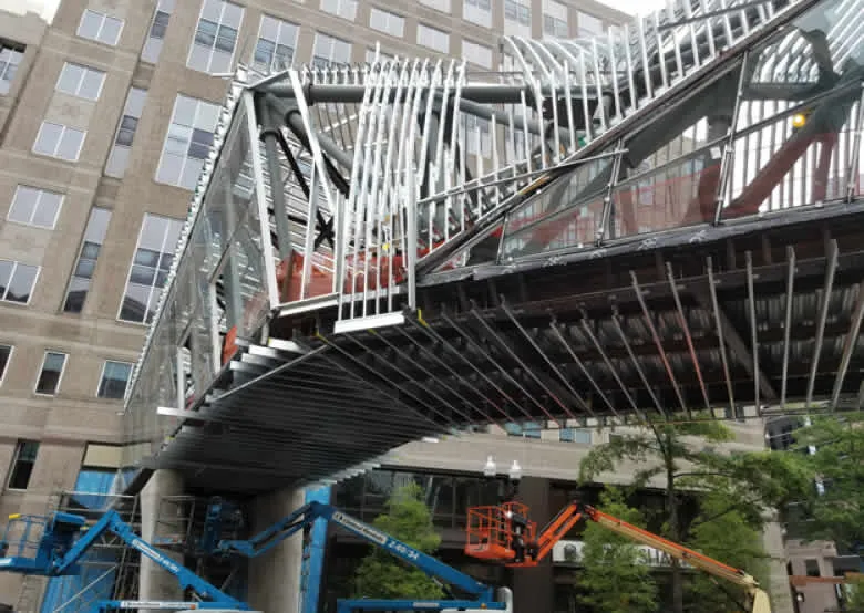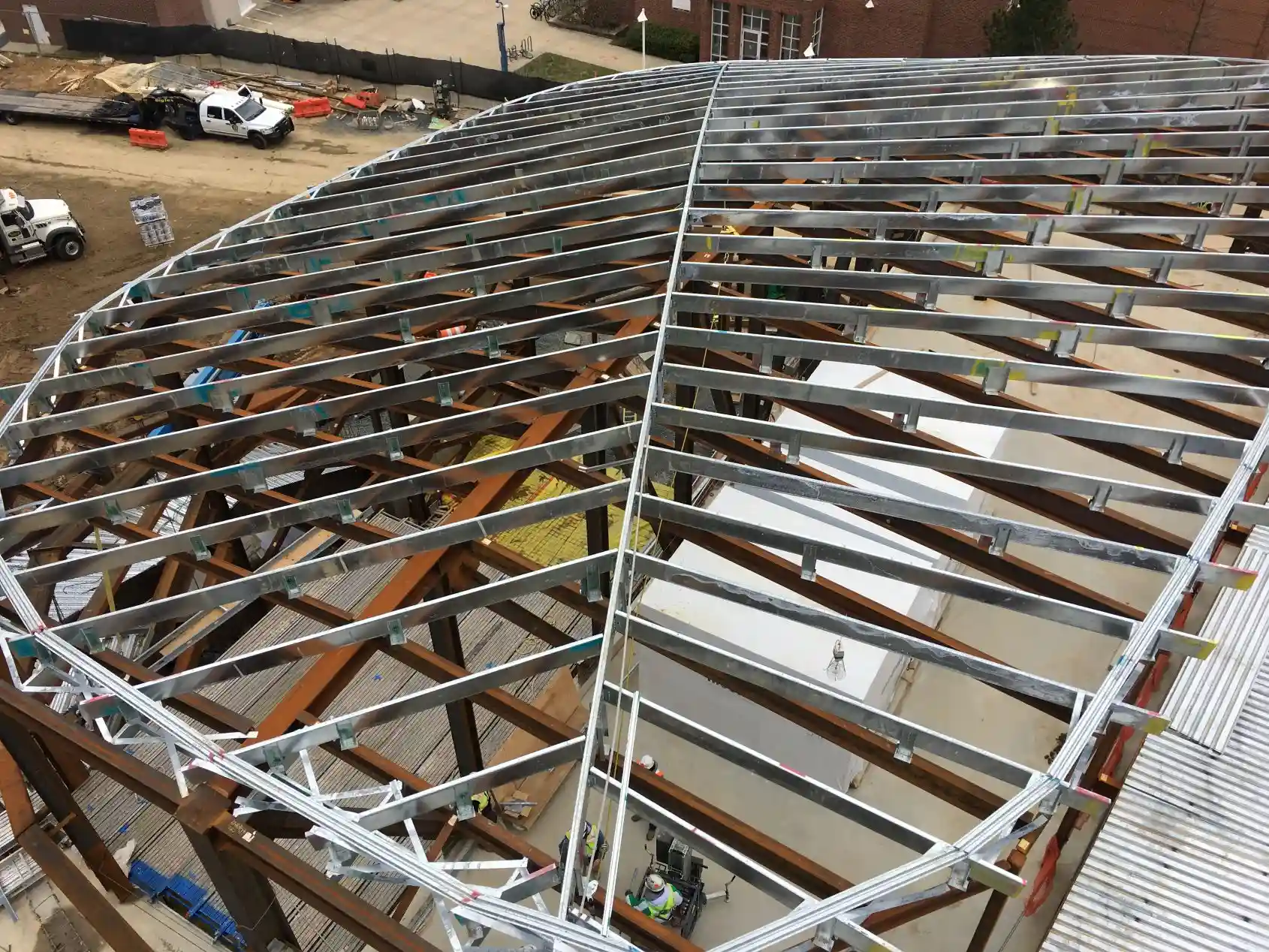 Transform curved roof designs into constructible systems. Our light-gauge steel framing delivers precision and efficiency through offset clips for geometry control, structured assemblies, or cold-formed steel infill integrated with complex primary steel structures.