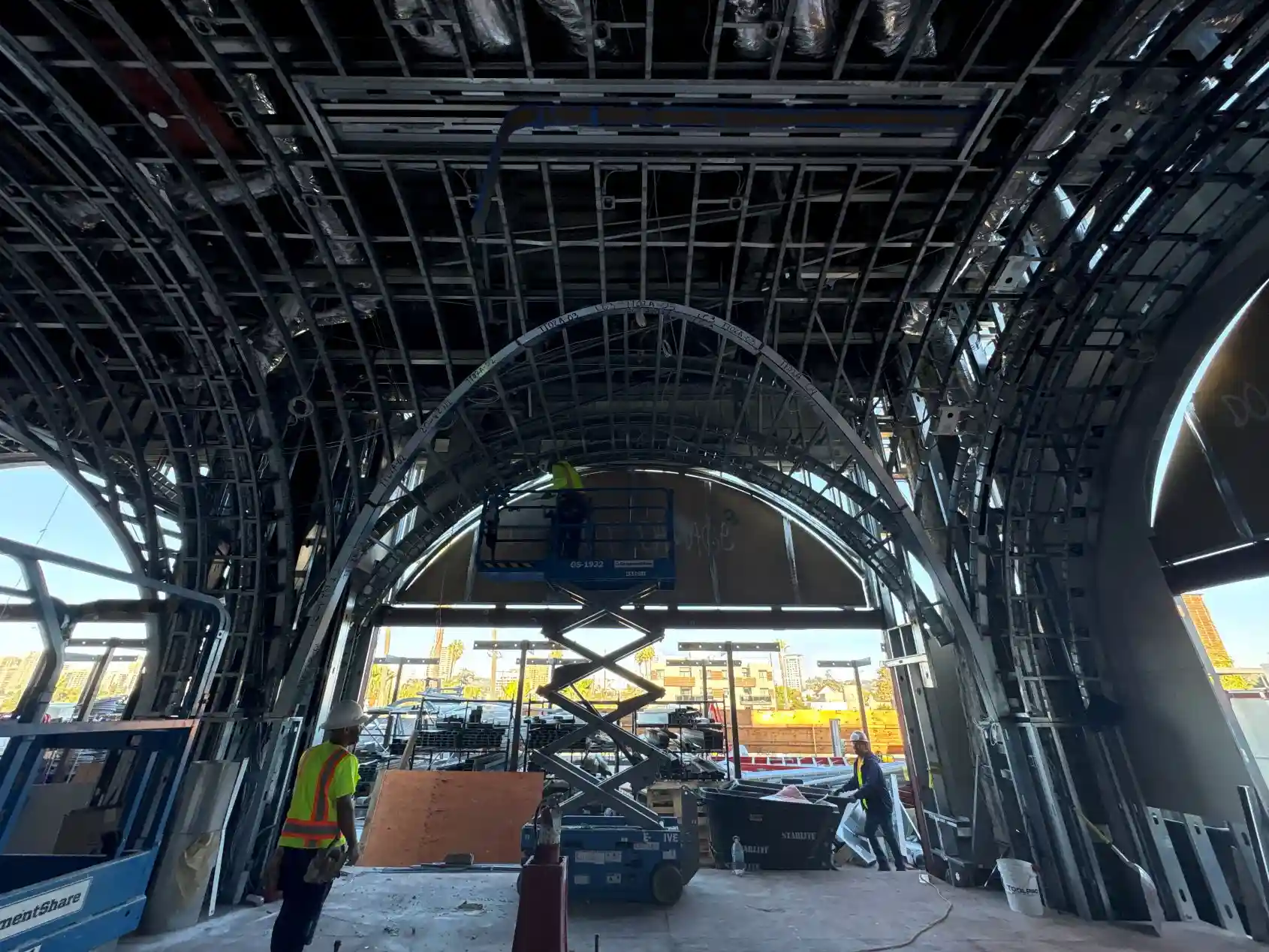 Transform curved roof designs into constructible systems. Our light-gauge steel framing delivers precision and efficiency through offset clips for geometry control, structured assemblies, or cold-formed steel infill integrated with complex primary steel structures.