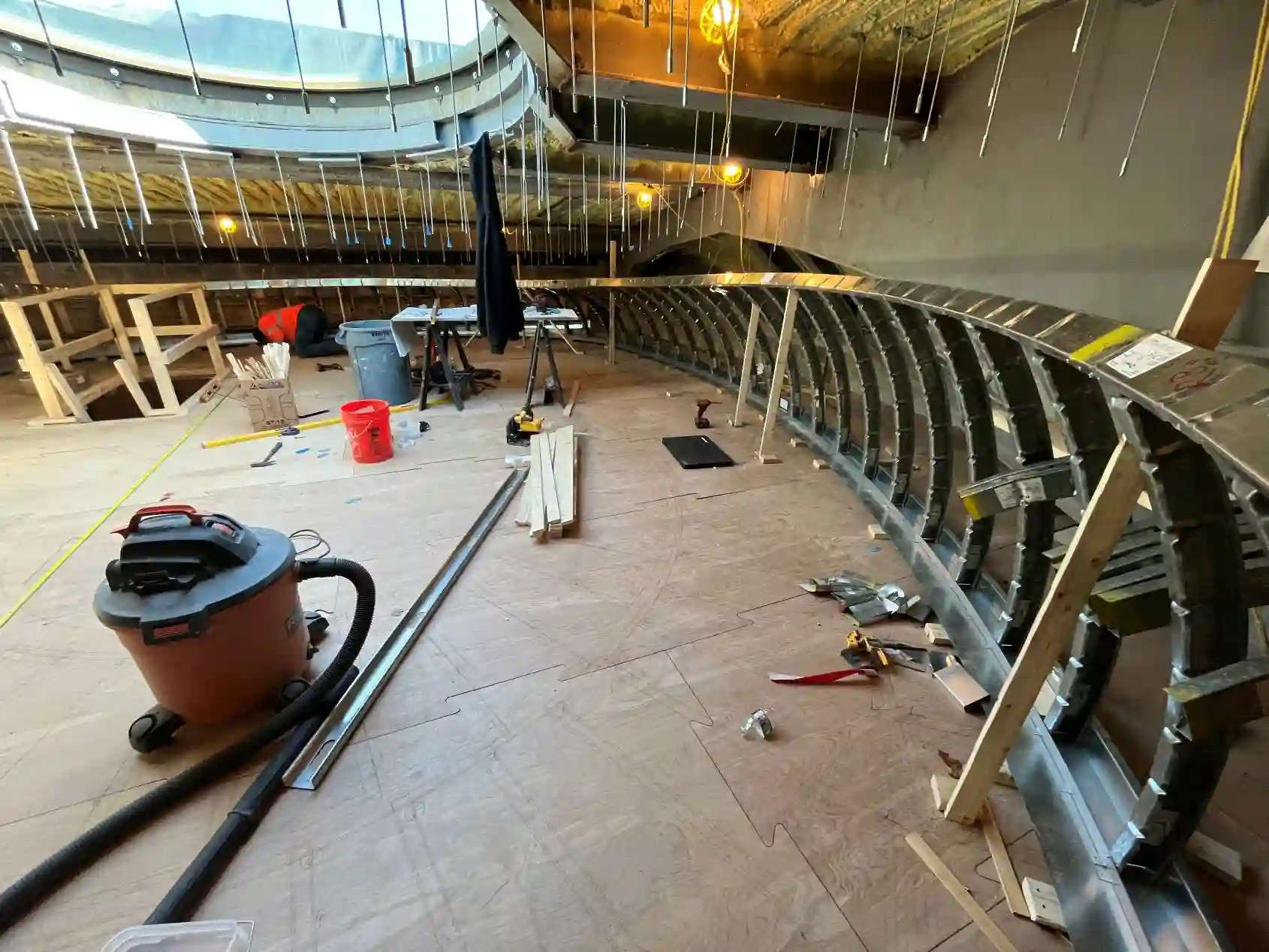Floating ceiling forms that hang with ease. Pre-curved or panelized steel framing ensures consistent geometry, seamless alignment, and efficient installation for clean, well-coordinated results overhead.
