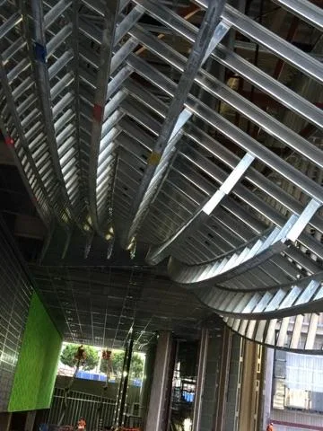 Radius Track was contracted to solve the cold-formed steel framing needs for the port cochère's ribbed swale ceiling feature: