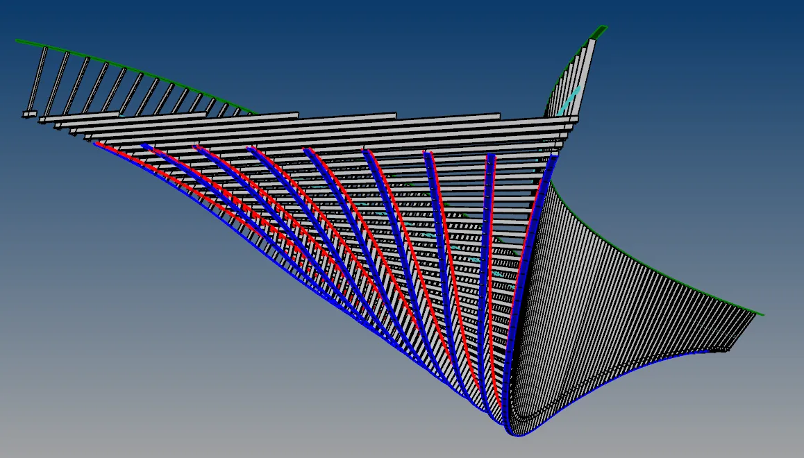Radius Track had to rationalize the architect's approved surface model design of the complex ceiling geometry. The team synthesized it into a buildable stick-framed kit.